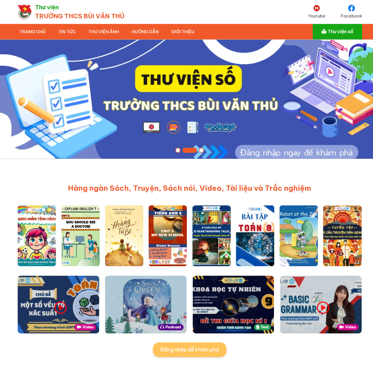 Ebook: Nhà trường cung cấp Ebook bộ sách giáo khoa, Ebook sách giáo viên mà trường đã chọn lựa và các Ebook học tiếng Anh bằng AI hay eBook tham khảo lên thư viện số để học sinh và giáo viên tham khảo khi không mang sách giấy bên cạnh.
